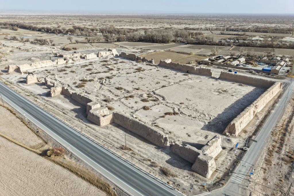 这是在甘肃省瓜州县锁阳城镇常乐村拍摄的破城子遗址全景(无人机照片)。新华社记者 郎兵兵 摄