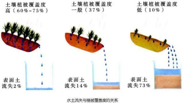 植被是自然因素中防止土壤侵蚀起积极作用的因素。植被具有拦截降水,削弱雨滴对土壤的破坏作用,同时也可以调节地面径流、固结土体、改良土壤等作用,从而缓阻土壤侵蚀。