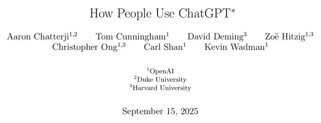 在新任首席经济学家Aaron Chatterji的带领下,OpenAI发布了一份名为《全球用户如何使用ChatGPT》的报告。