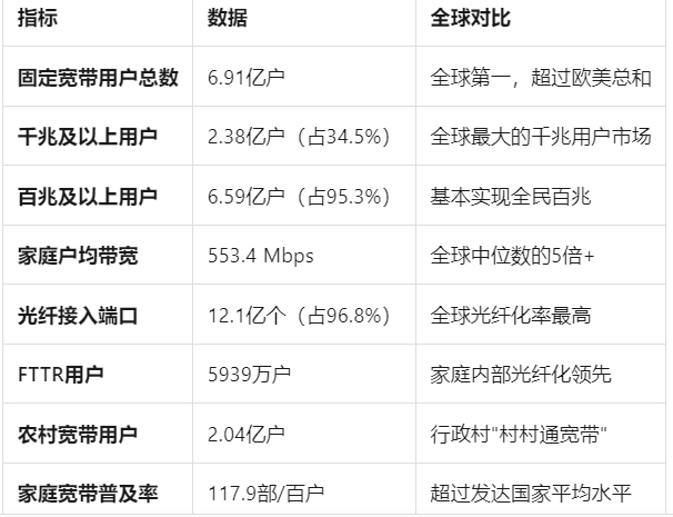 年宽带中国战略发布,到2025年2.38亿户千兆宽带、户均553Mbps,中国用12年时间走完了发达国家几十年的路。这不是简单的网速快,而是国家战略、制度优势、产业协同的综合体现:战略层面:将宽带定位为国家战略性公共基础设施,持续投入